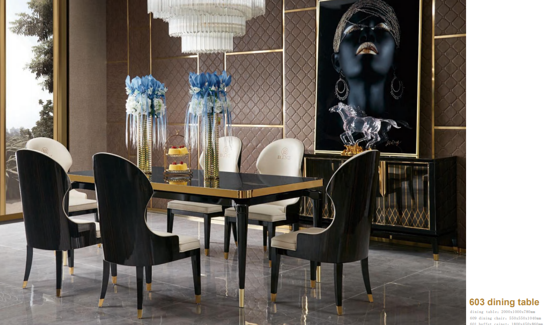 Of je nu een modern interieur hebt of juist een meer klassieke stijl, de Ontwerp eetkamerstoel set past perfect bij diverse decoratiestijlen. De echt houten korpus geeft de meubels een warme en natuurlijke uitstraling, terwijl het RVS een vleugje eigentijdse flair toevoegt. Deze set is ideaal voor gezinnen die op zoek zijn naar stijlvolle, comfortabele en functionele eetkamermeubels. Geniet van lange en gezellige diners met vrienden of familie aan deze prachtige eettafel, omringd door comfortabele eetkamerstoelen die klasse en comfort combineren.