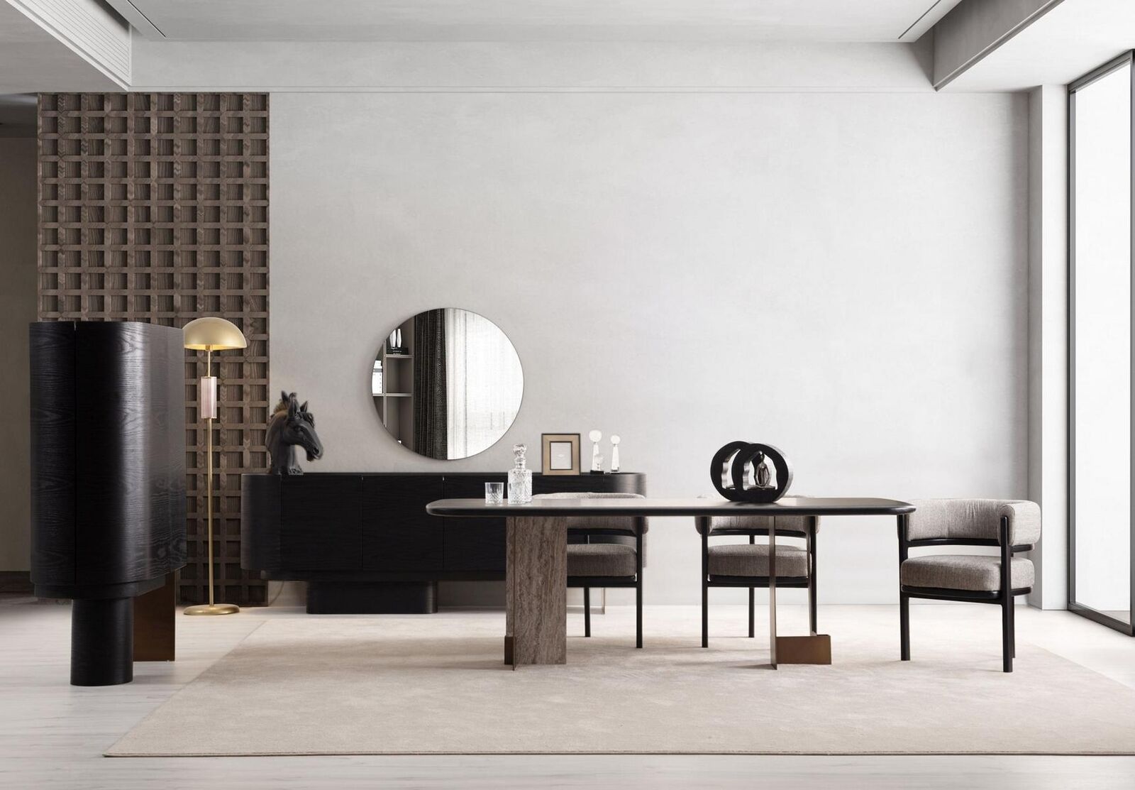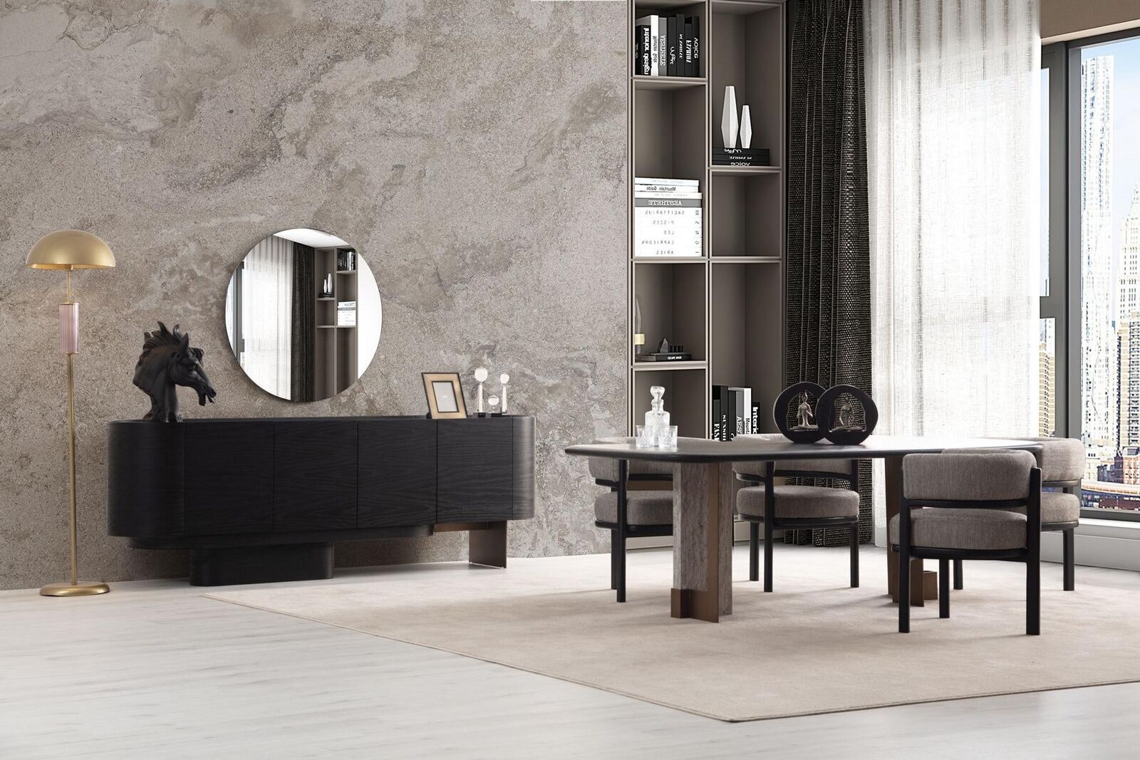 Designer eetkamerset, eettafel 6x stoelen dressoir spiegel 9-delig.