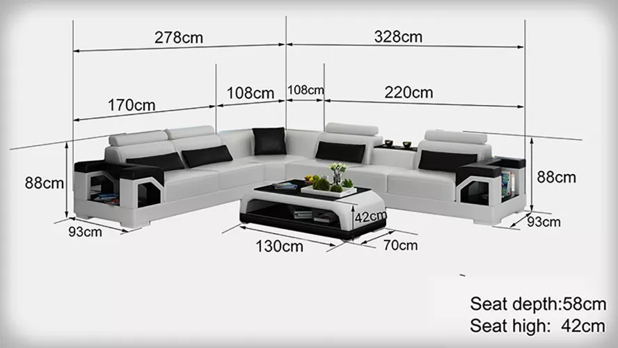Hoekbank Bank Beklede Hoekbank Bankstellen Hoeklerensofa Woonlandschap biedt een combinatie van comfort en stijl voor jouw woonruimte. Met afmetingen van ca. 278 x 328 cm (L-vorm) of ca. 328 x 278 cm, en een hoogte van ca. 88 cm, zorgt deze hoekbank voor voldoende ruimte om te ontspannen. De zithoogte van ongeveer 42 cm en zitdiepte van ca. 58 cm zorgen voor een comfortabele zitervaring. Gemaakt van Premium ledervezelstof (70% leder / 30% polyester), biedt deze hoekbank duurzaamheid en een luxe uitstraling. Optioneel kun je kiezen uit verschillende bekledingsmaterialen zoals echt leer en textielstof voor een persoonlijke touch.
