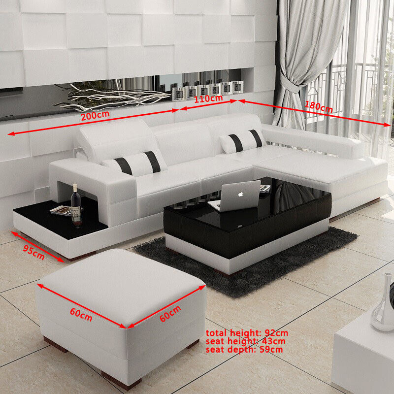 Hoekbank Bank Bekleding Woonlandschap Leer Hoekbankstel L-vorm met Voetenbank is een luxe toevoeging aan je woonkamer, met een modern ontwerp en hoogwaardige materialen. Deze L-vormige hoekbank biedt een ruime zitruimte en is perfect voor gezellige avonden met vrienden en familie. Gemaakt van premium ledervezelstof (70% leder / 30% polyester), combineert deze hoekbank stijl met comfort. Met afmetingen van ca. 310 x 180 cm of 180 x 310 cm past deze hoekbank in verschillende interieurindelingen. De bank heeft een hoogte van ca. 92 cm, diepte van ca. 95 cm en zithoogte van ca. 43 cm, waardoor een comfortabele zitervaring wordt gegarandeerd. De optionele bekledingsopties variërend van premium echt leder tot textielstof bieden personalisatiemogelijkheden om de hoekbank aan te passen naar jouw smaak.
