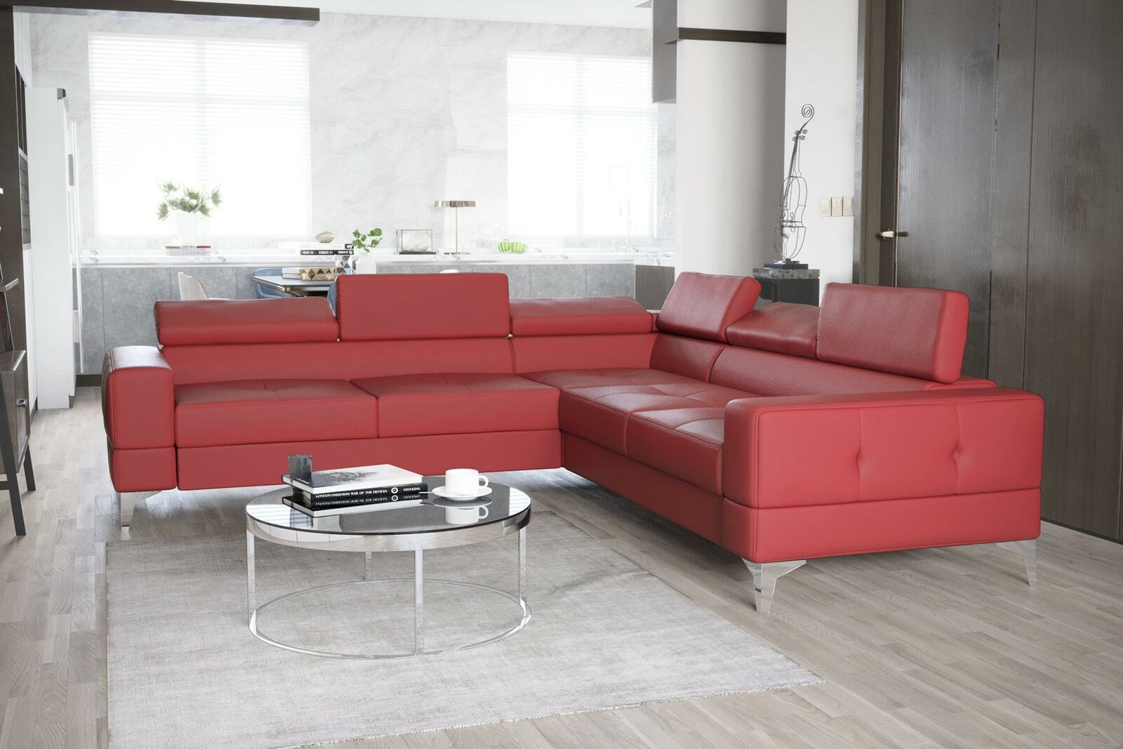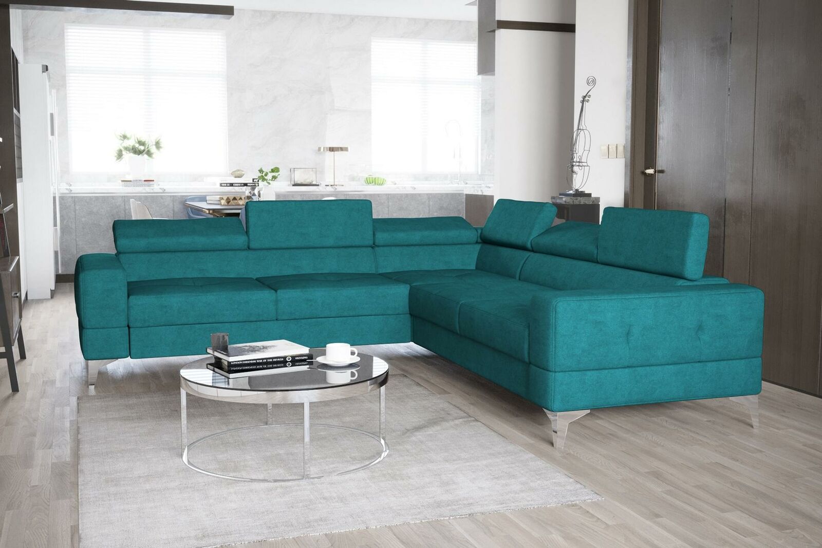 Binnenhuisinrichting, stijlvol wonen, binnenhuisarchitectuur, L-vormige bank.