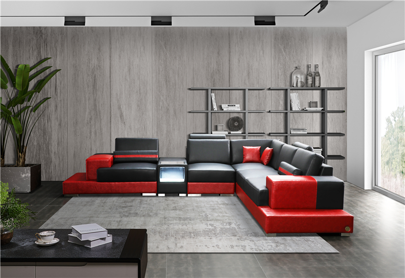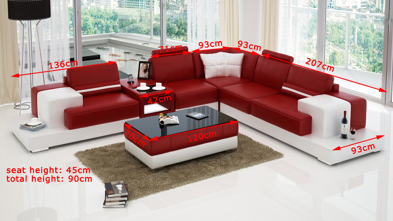 Bank hoekbank leder woonlandschap set design modern Sof L-vorm salontafel