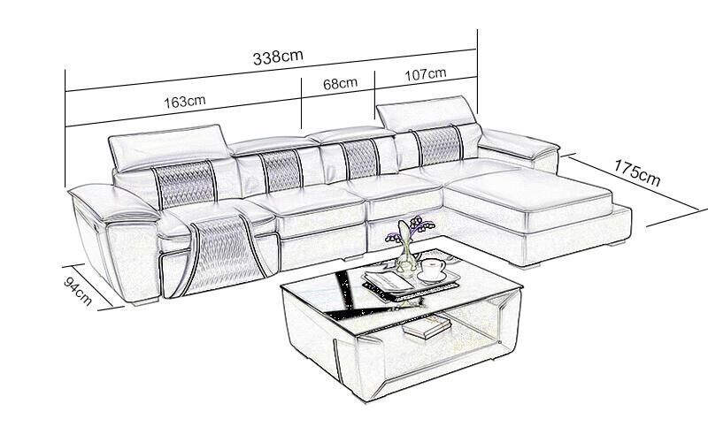 De Eckstof hoekbank L-vorm bank combineert functionaliteit met een modern ontwerp, perfect voor elk eigentijds interieur. Met afmetingen van ca. 338 x 175 x 75 cm biedt deze bank voldoende ruimte voor ontspanning en entertainment. De bank is bekleed met hoogwaardige premium ledervezelstof (70% leder / 30% polyester) voor duurzaamheid en comfort. De zithoogte van ca. 44 cm en zitdiepte van ca. 58 cm zorgen voor een ergonomische en comfortabele zitervaring. Optioneel is de bank verkrijgbaar in verschillende bekledingsmaterialen, waaronder echt leer en textielstof, om aan individuele voorkeuren te voldoen.