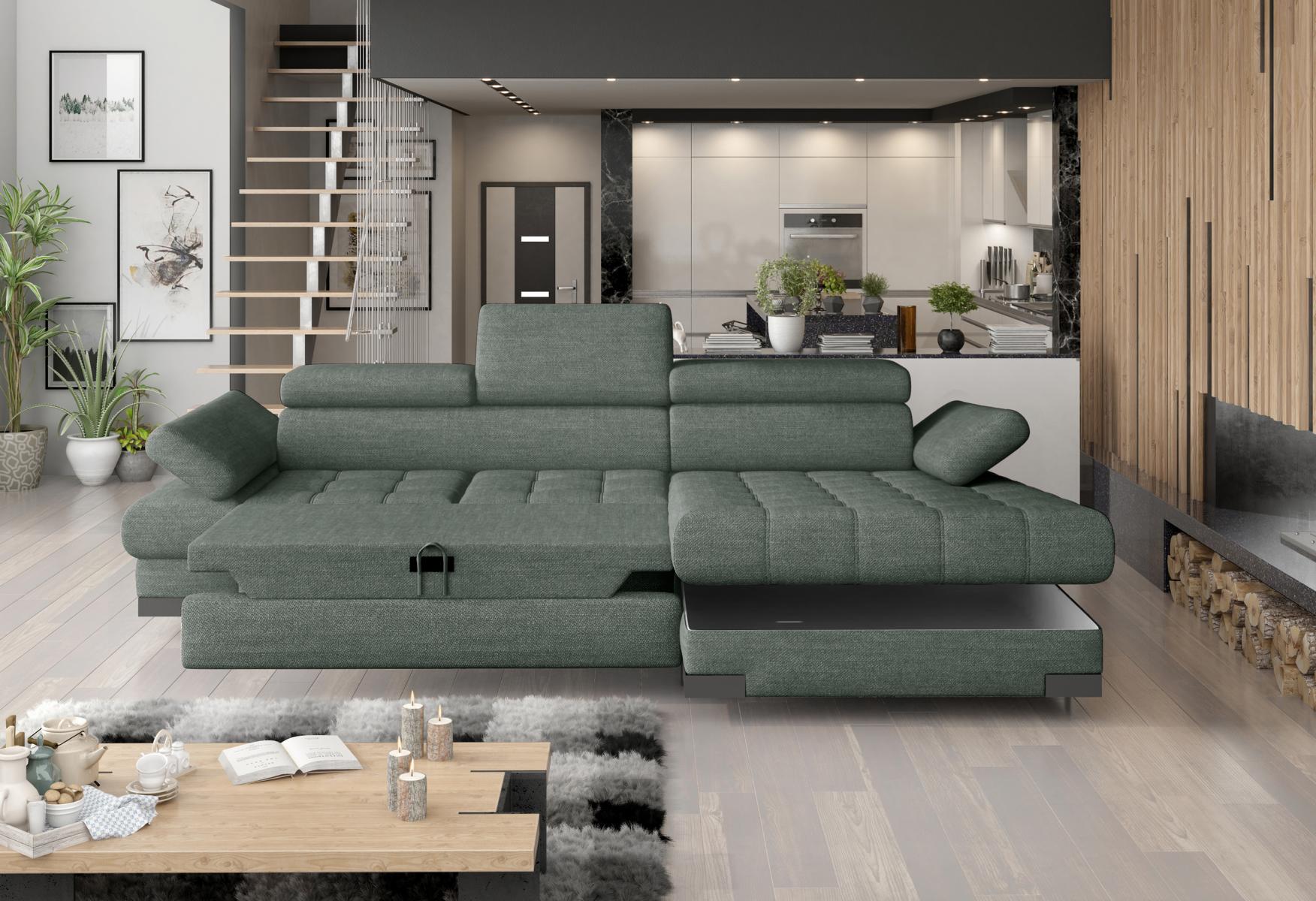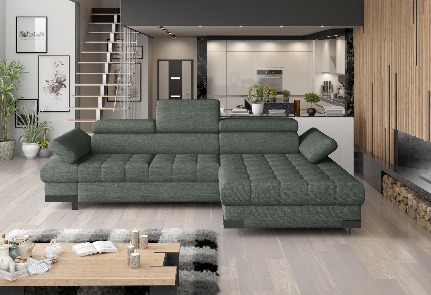 Hoekbank Bank Bankstel Woonlandschap Textiel Hoekbanken Groen L-vorm Bankstellen is een stijlvolle en veelzijdige toevoeging aan elk interieur. Met de afmetingen van ca. 270 x 173 x 75/95 cm biedt deze hoekbank L-vorm voldoende ruimte om te ontspannen en te socializen. Het zitgedeelte heeft een royale afmeting van ca. 270 cm en een comfortabele zitdiepte van ca. 60 cm, perfect voor gezellige avonden of ontspannen middagen. De bank is beschikbaar in verschillende kleuren naar keuze, waarbij hoogwaardige materialen zoals stof - Groep 1, Premium kunstleer - Groep III of Stof of premium kunstleer - Groep IV voor een luxe uitstraling zorgen. Met een slaapfunctie van ca. 122 x 216 cm ligoppervlak en handige opbergruimte is deze hoekbank niet alleen comfortabel, maar ook functioneel in gebruik.