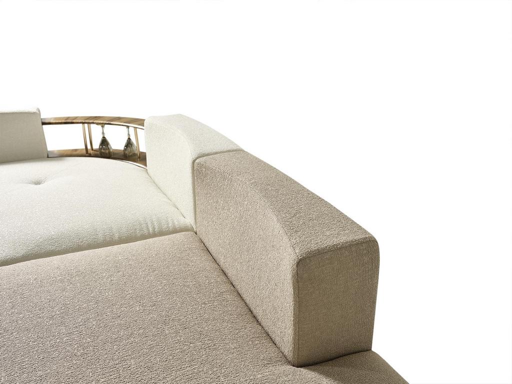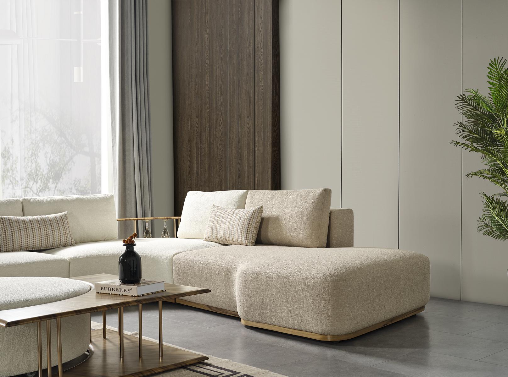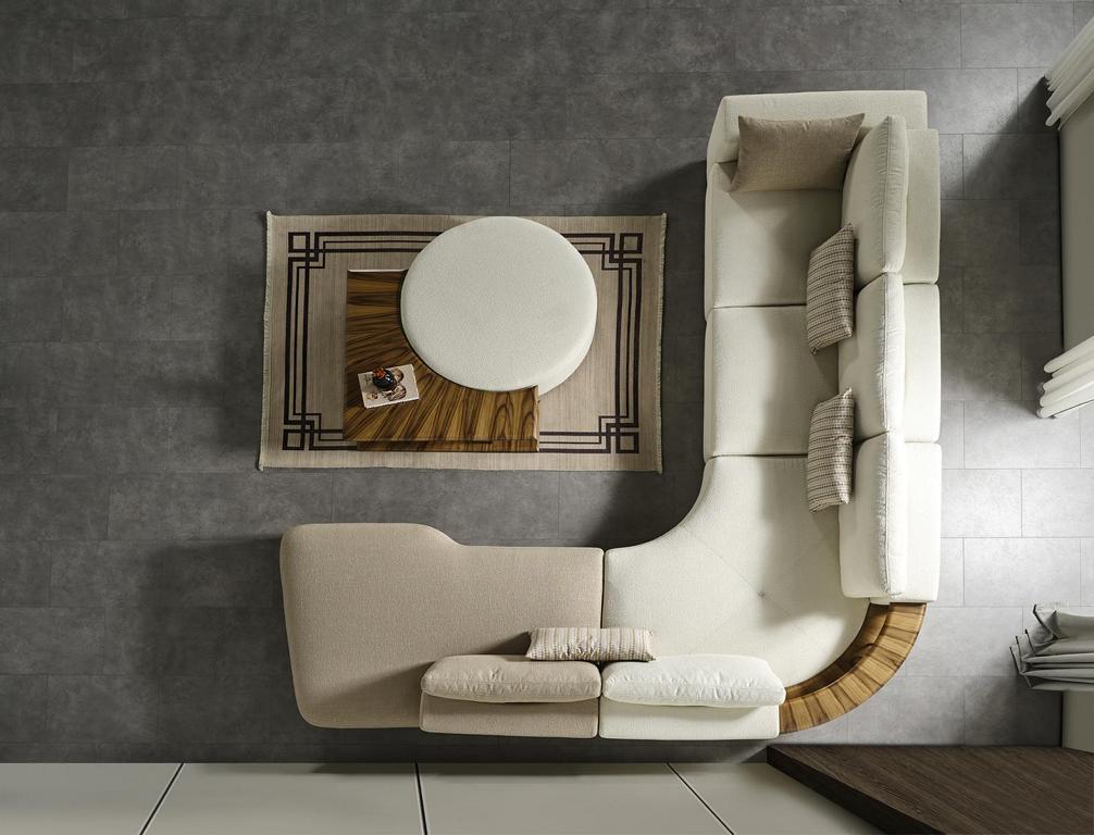 Hoekbank, woonkamer meubels, moderne stijl, salontafel, poef.