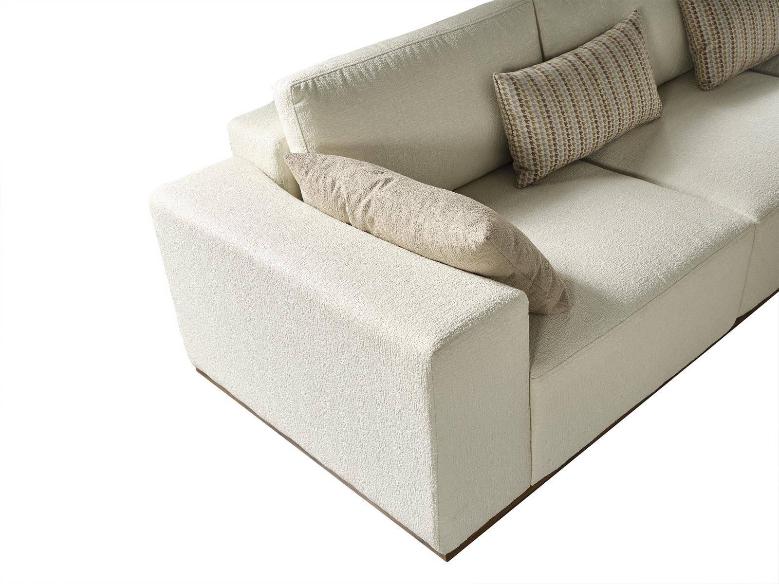 Creëer een gezellige zithoek in je woonkamer waar je kunt genieten van ontspannen avonden met vrienden en familie. De L-vormige opstelling van de hoekbank biedt voldoende zitplaatsen en nodigt uit tot lange en gezellige gesprekken. De neutrale kleur past perfect bij diverse kleurenschema's en decoratiestijlen, waardoor je eindeloos kunt variëren met accessoires en kussens om je persoonlijke stempel te drukken op de inrichting. Of je nu een filmavond organiseert of gewoon lekker wilt relaxen, deze hoekbank zal zeker de favoriete plek worden in je woonkamer.