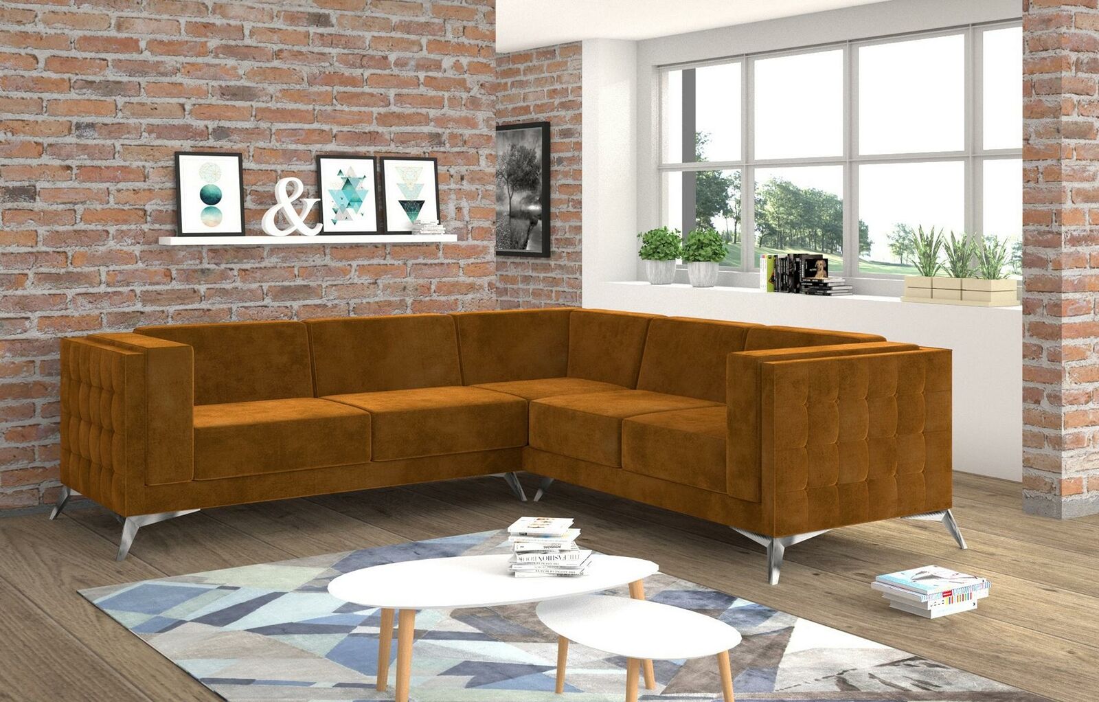 Hoekbank, L-vormige bank, Moderne bank, Stoffen bank
