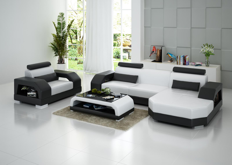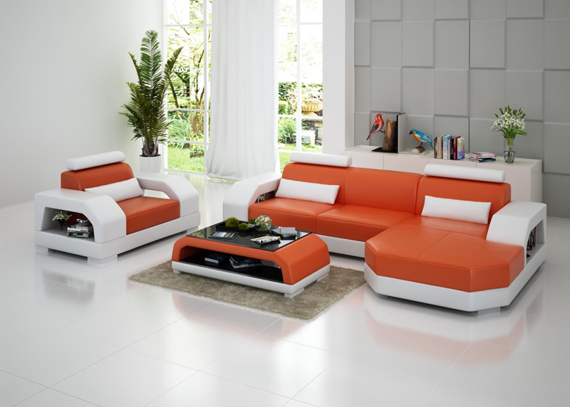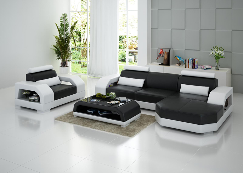 Leren bank bankstel hoekbank + fauteuil set ontwerp modern LED USB