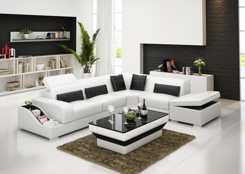 Leren bank met USB woonlandschap hoekbank hoekstuk ontwerp modern bankstel G8008D