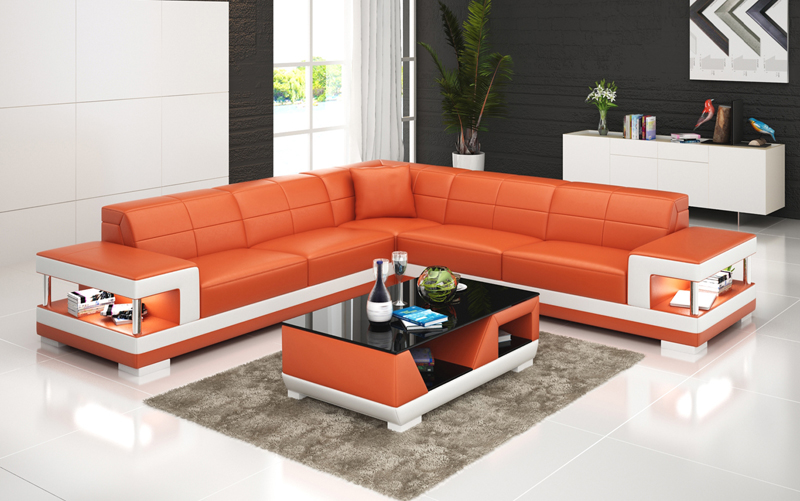 Lederen bank met USB woonlandschap hoekbank hoekstel ontwerp moderne bank G8017B