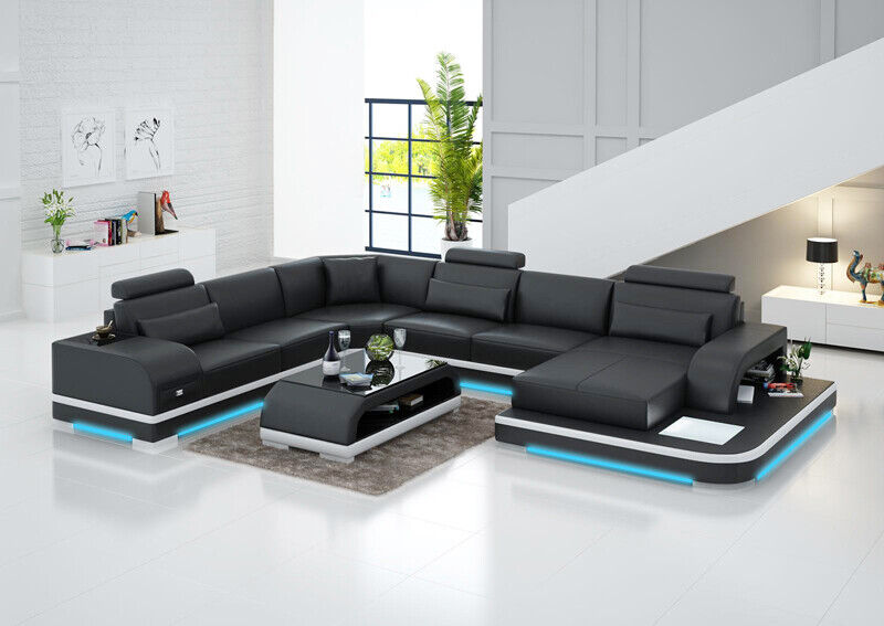 **Leren bankbank woonlandschap hoekbank hoekbank ontwerp moderne bank + USB nieuw**