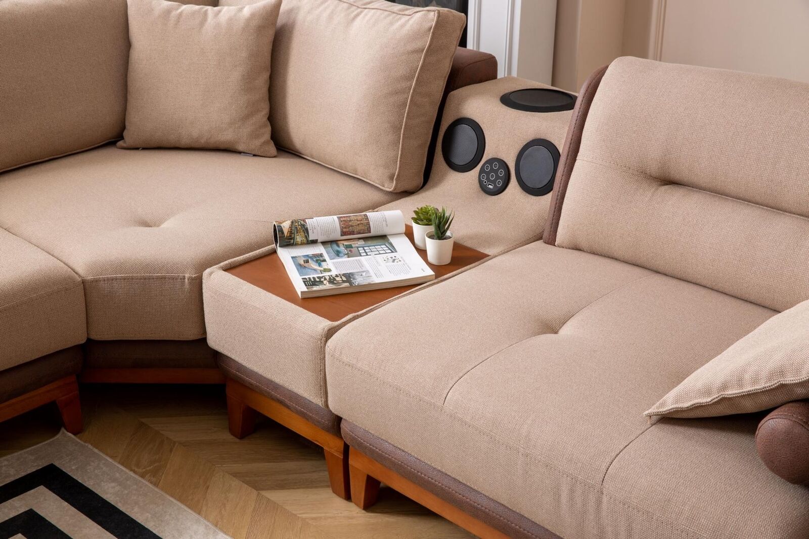 Luxe, hoekbank, L-vorm, Beige, woonkamermeubels, bank, multifunctioneel, modern