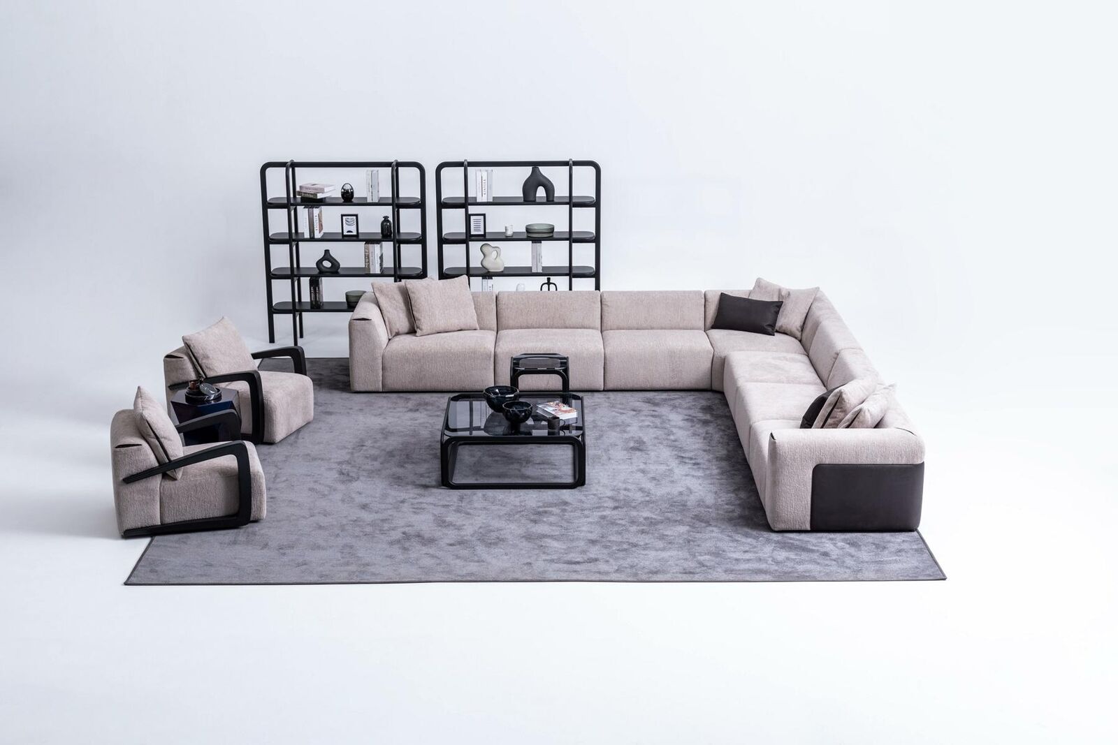 Luxe bankstel-set zitgroep woonlandschap L-vorm bank fauteuil textiel Nieuw