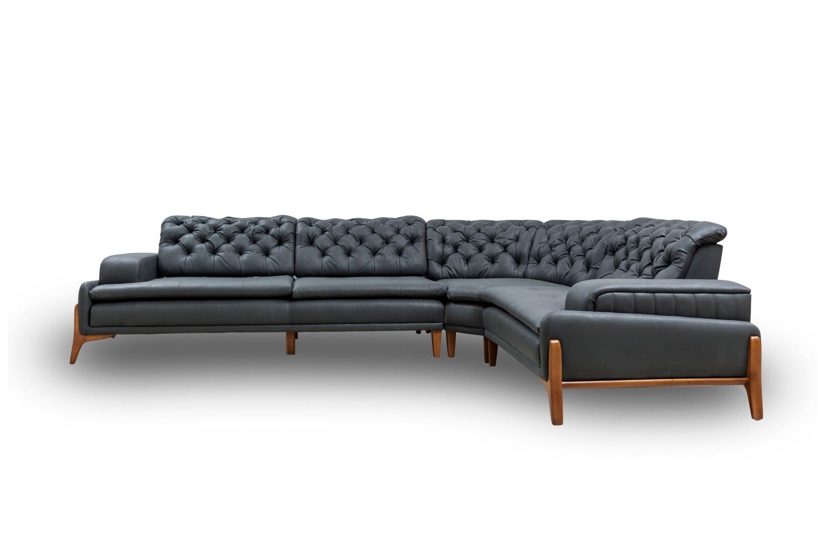 Luxe hoekbank, L-vormige hoekbank, grijze meubels, moderne meubels, audiosysteem