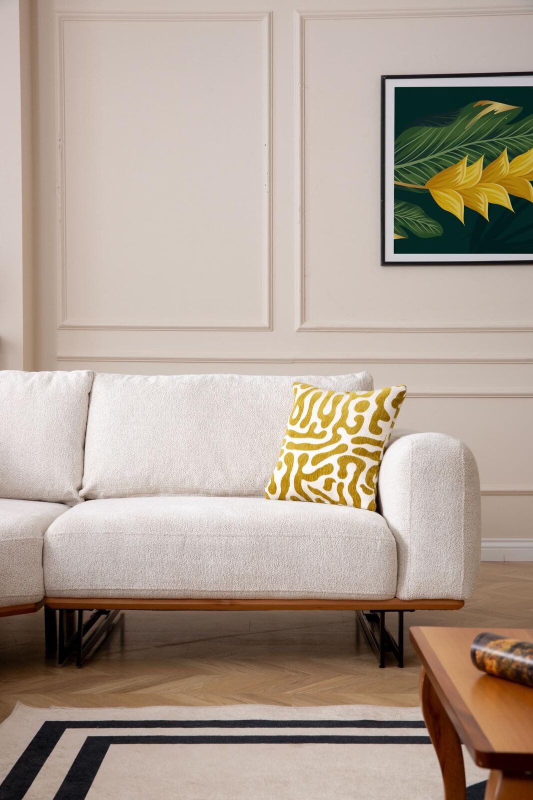 Inricht uw woonkamer met deze Luxe L-vormige hoekbank en creëer een gezellige en uitnodigende zithoek voor uzelf en uw gasten. Geniet van ontspannen avonden of weekenden terwijl u comfortabel zit op deze prachtig vormgegeven bank. De veelzijdige L-vormige opstelling biedt flexibiliteit en past perfect in hoeken of als scheidingswand in grotere ruimtes. Haal een vleugje elegantie en comfort in huis met deze wit gestoffeerde hoekbank. Upgrade uw woonruimte met deze Luxe L-vormige stoffen hoekbank en geniet van stijlvolle en aangename zitmomenten.