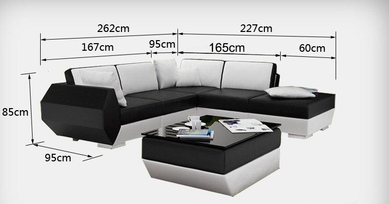 De elegante lederen hoekbank is een multifunctioneel en stijlvol meubelstuk dat perfect is voor uw huis. Met afmetingen van ongeveer 262 x 227 cm biedt deze hoekbank voldoende ruimte om te ontspannen en te socializen. De bank heeft een comfortabele hoogte van ongeveer 85 cm en een zithoogte van circa 42 cm, waardoor het ideaal is voor urenlang zitcomfort. Het premium ledervezelstof (70% leder / 30% polyester) materiaal zorgt voor duurzaamheid en een luxe uitstraling. De USB-Klikautomaat met 3-voudige aansluiting is inbegrepen, waardoor u gemakkelijk elektronische apparaten kunt opladen of aansluiten.