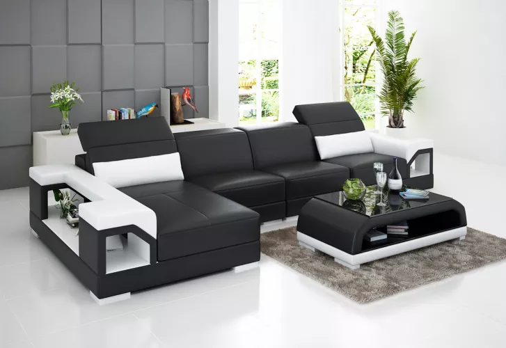Deze bank is beschikbaar in vrije kleurkeuze, waardoor u de mogelijkheid heeft om uw woonkamer aan te passen aan uw persoonlijke stijl. Optionele upgrades naar premium echtleer of textielstof zijn ook beschikbaar in de winkel. Het gebruik van Italiaans runderleer voor bepaalde delen van de bank benadrukt de luxe uitstraling en kwaliteit van dit meubelstuk. Of u nu op zoek bent naar een comfortabele plek om te ontspannen na een lange dag of een statementstuk voor uw woonkamer, deze ontwerp bankstellen hoekbank zal zeker voldoen aan uw wensen.