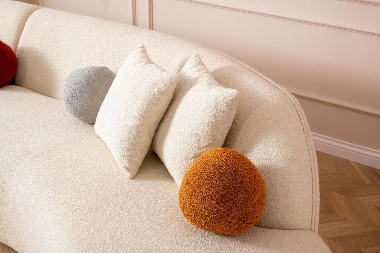 Witte designbank, L-vormige hoekbank, moderne meubels, luxe woonkamer, stijlvolle hoekbank