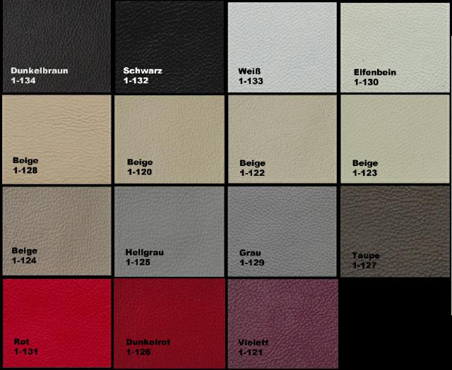 alle übrigen Lederbezüge aus farbgleichem Premium Kunstleder