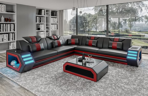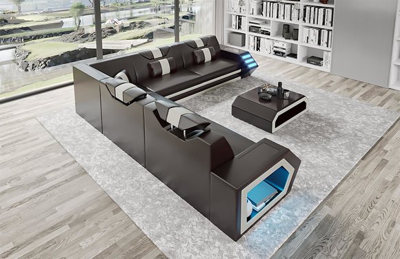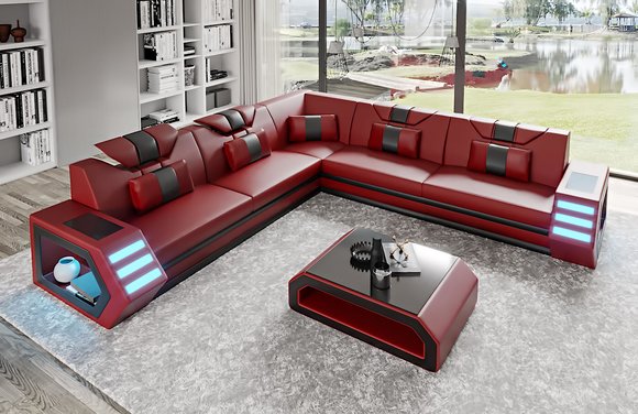 Woonlandschap leren bank bank bekleding hoekbank bank groot XXL bankstel