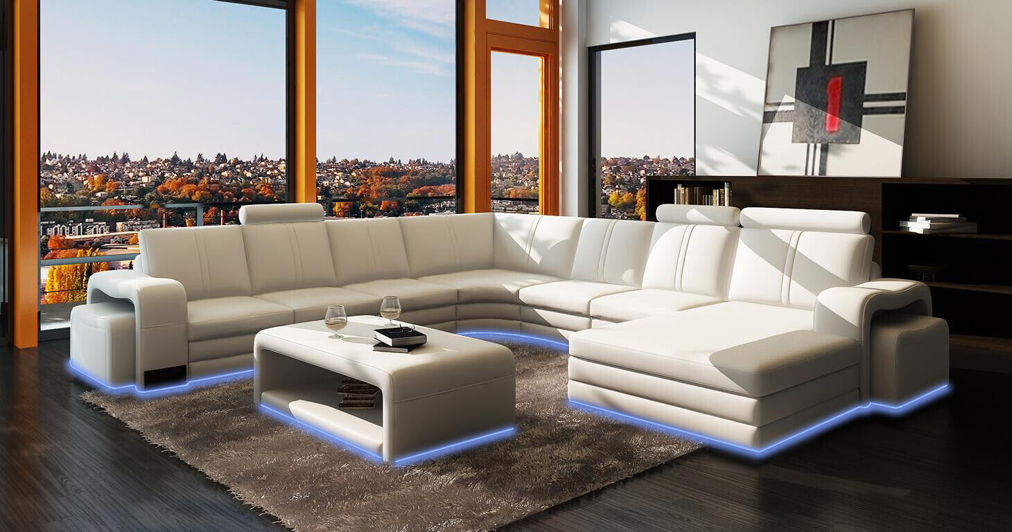 XXL Multifunctioneel leren bankstel Bank Grote bank Bekleding Decor Hoekbank Moderne