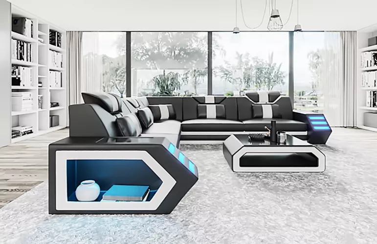 Leren bekleding ontwerp woonkamer hoekbank hoekbank bank bank L-vorm woonlandschap