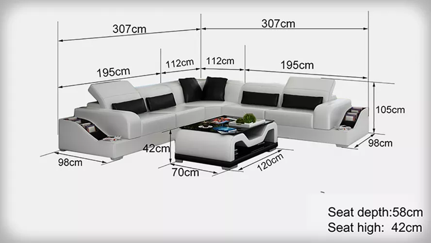 Leren bankstellen Ontwerp Woonkamer Goedkope gestoffeerde meubels Zitgroep Bank Nieuw biedt een combinatie van stijl en comfort voor je woonkamer. Met een L-vormige hoekbank van ca. 307 x 307 cm en een salontafel van ca. 80 x 80 x 42 cm, is dit meubelstuk ideaal voor gezelligheid en ontspanning. De bank is voorzien van Premium ledervezelstof (70% leder / 30% polyester), wat zorgt voor duurzaamheid en een luxe uitstraling. Met een hoogte van ca. 105 cm en zithoogte van ca. 42 cm, biedt deze bank optimale ondersteuning en comfort. In deze bankstellen kun je heerlijk loungen of gezellig met vrienden en familie samenkomen.