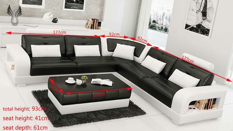 Leren hoekbank + salontafel set gestoffeerde L-vormige bank ontwerp.