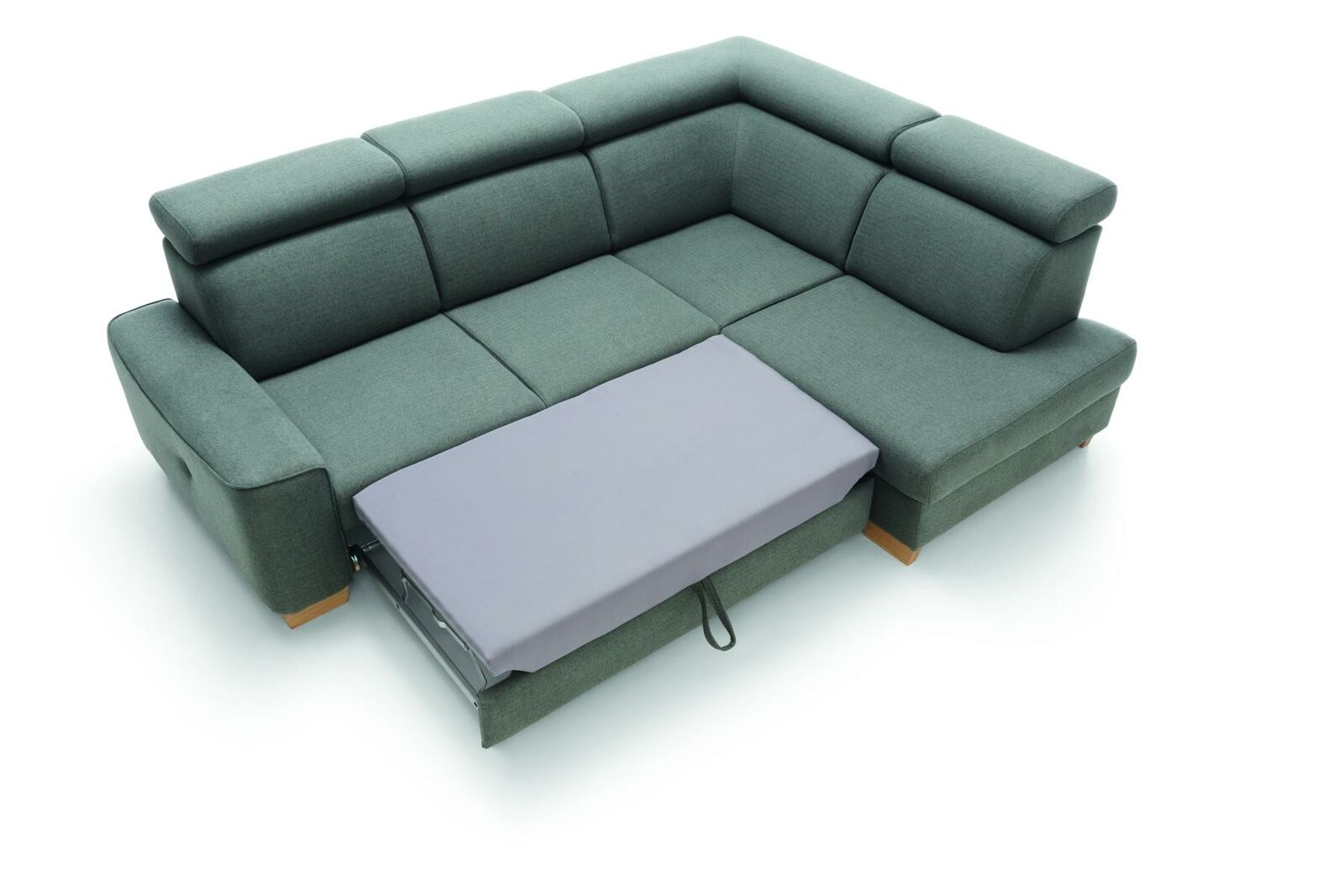 Moderne hoekbank met stoffen bekleding, slaapbank, bank bestellen, bekleding.