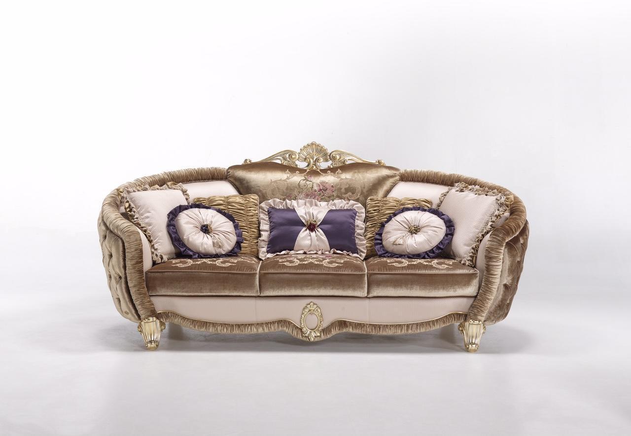 Klassieke gestoffeerde 3-zits textielbanken Textielbank Bank Driezitsbank Nieuw: Op zoek naar een stijlvolle toevoeging aan uw woonruimte? Deze prachtige 3-zits textielbank combineert klassieke elegantie met comfort en functionaliteit. Met afmetingen van ongeveer 296 x 110 x 111 cm biedt deze bank voldoende ruimte voor ontspanning en gezelligheid. De zithoogte van ongeveer 44 cm en de zitdiepte van ongeveer 58 cm zorgen voor een comfortabele zitervaring. Gemaakt van hoogwaardig hout en afgewerkt in een aantrekkelijke kleur zoals afgebeeld, is deze bank een perfecte aanvulling op elk interieur.