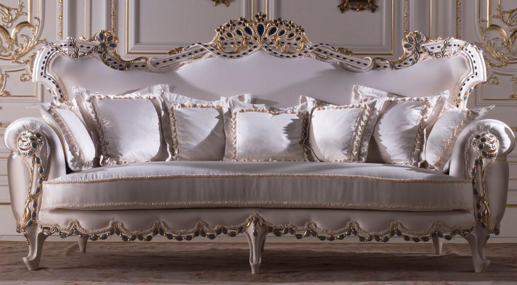 Klassieke driezitsbank woonlandschap stoffen bank 3 zitplaatsen barok.