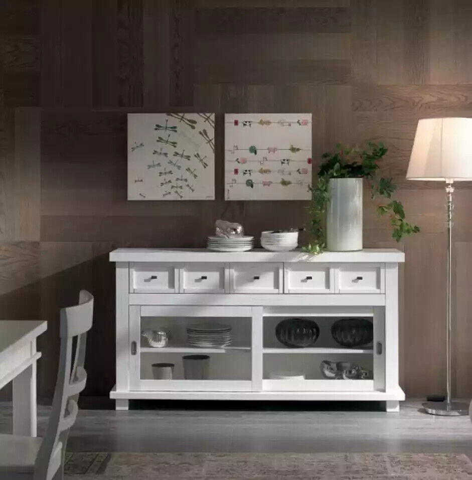 In uw huis zal dit sideboard zeker een blikvanger zijn dankzij de verfijnde kast en de kleur zoals afgebeeld. Plaats het in de woonkamer voor het opbergen van boeken en decoratieve items, of gebruik het in de eetkamer voor servies en tafelgerei. De lengte van ongeveer 160 cm biedt voldoende ruimte, terwijl de hoogte van ca. 86 cm en breedte van circa 45 cm zorgen voor een evenwichtige uitstraling in elke ruimte. Geniet van de luxe en de Italiaanse stijl die dit dressoir met zich meebrengt, en verrijk uw interieur met deze prachtige toevoeging.