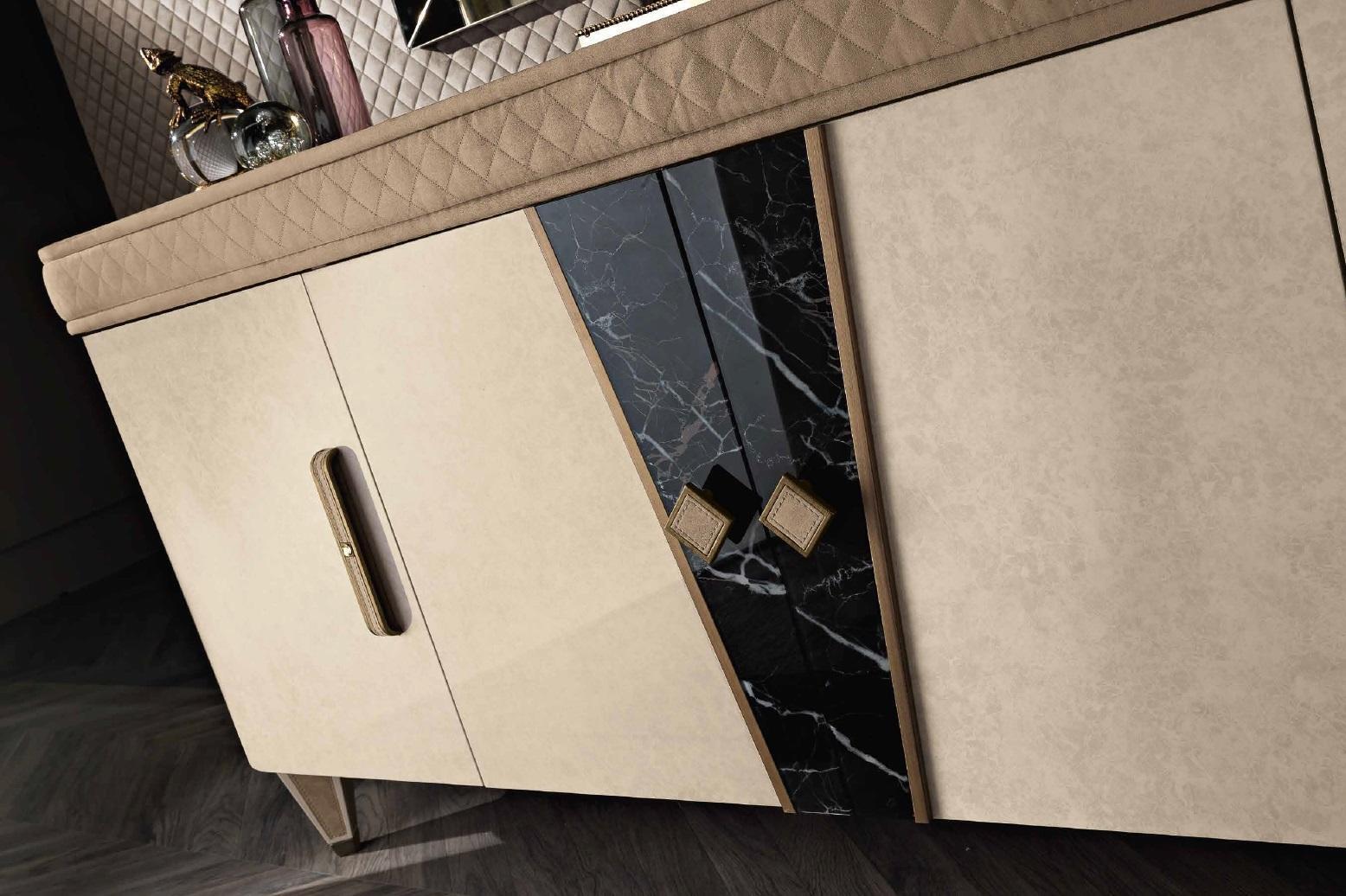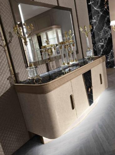 In deze commode kunt u uw kleding en accessoires netjes opbergen, terwijl de spiegel een handige toevoeging is voor uw ochtendroutine. De ruime lades bieden voldoende opbergruimte en helpen uw slaapkamer georganiseerd te houden. Dit meubelstuk is ideaal voor liefhebbers van luxe en elegantie, en zal een echte blikvanger zijn in elke slaapkamer. Creëer een sfeervolle en chique uitstraling in uw slaapkamer met deze prachtige commode met spiegel.