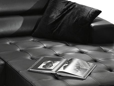 Modern lederen hoekbank in L-vorm voor woonkamer, zwarte kleur