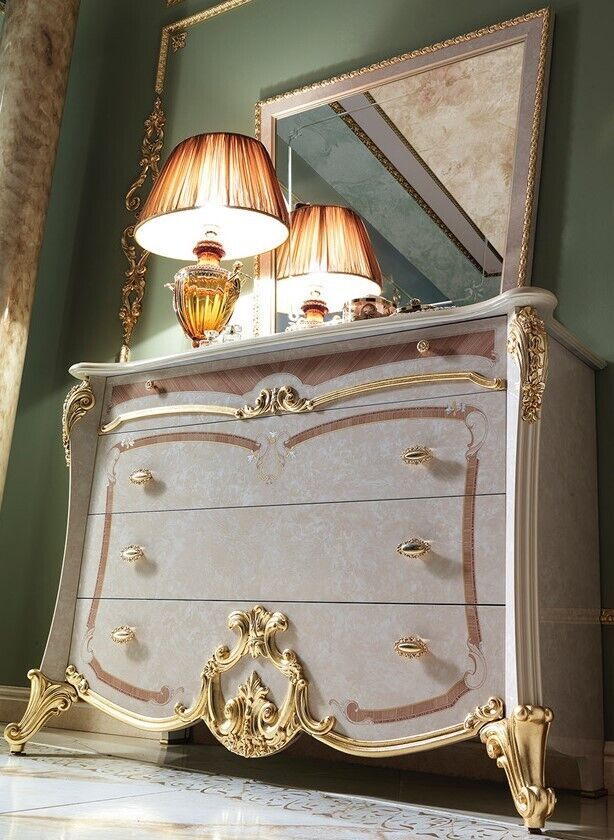 Deze complete slaapkamerset is ideaal voor diegenen die op zoek zijn naar een stijlvolle en functionele inrichting van hun slaapkamer. Met voldoende opbergruimte in de kleerkast en commode, evenals de handige nachtkastjes voor spullen binnen handbereik, wordt opruimen eenvoudig en efficiënt. De elegante spiegel voegt een vleugje luxe toe en maakt de ruimte optisch groter. Dit Italiaanse design slaapkamer set straalt klasse uit en biedt een uitnodigende en ontspannende sfeer in jouw slaapkamer. Haal met deze 6-delige set het beste van Italiaans vakmanschap naar jouw slaapvertrek!