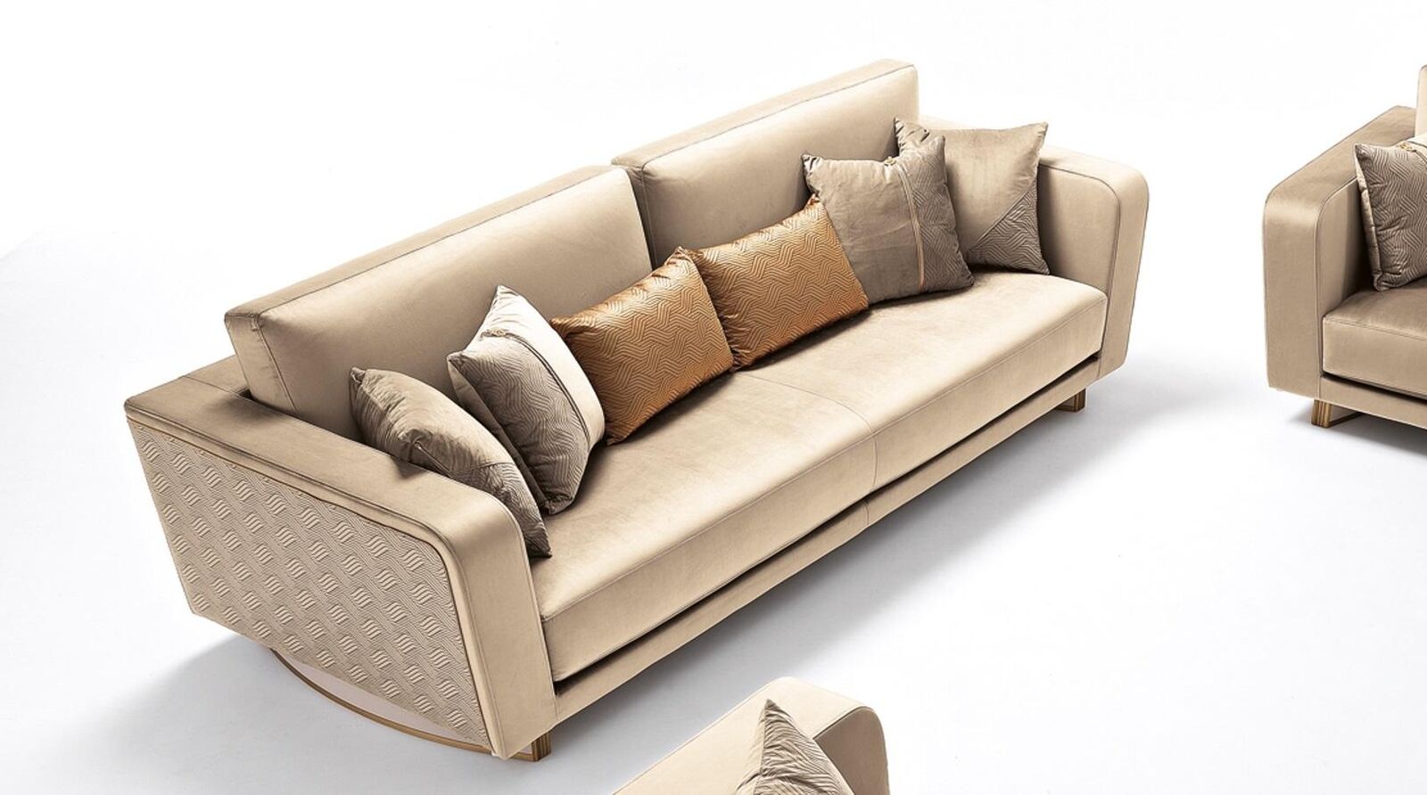 Designer-driepersoons gestoffeerde bank met een modern ontwerp voor de woonkamer.
