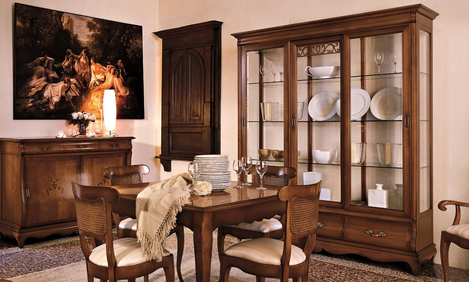 Garnitur Set Tafel 4x Stoelen Stoel Vitrine Set Dressoir Eetgroep 7-delig Eetkamer