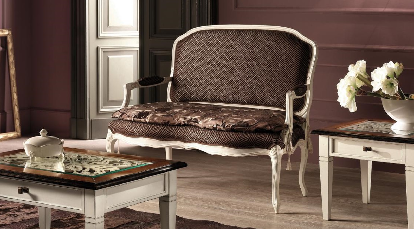 Zitbank voor de woonkamer, klassiek meubilair.