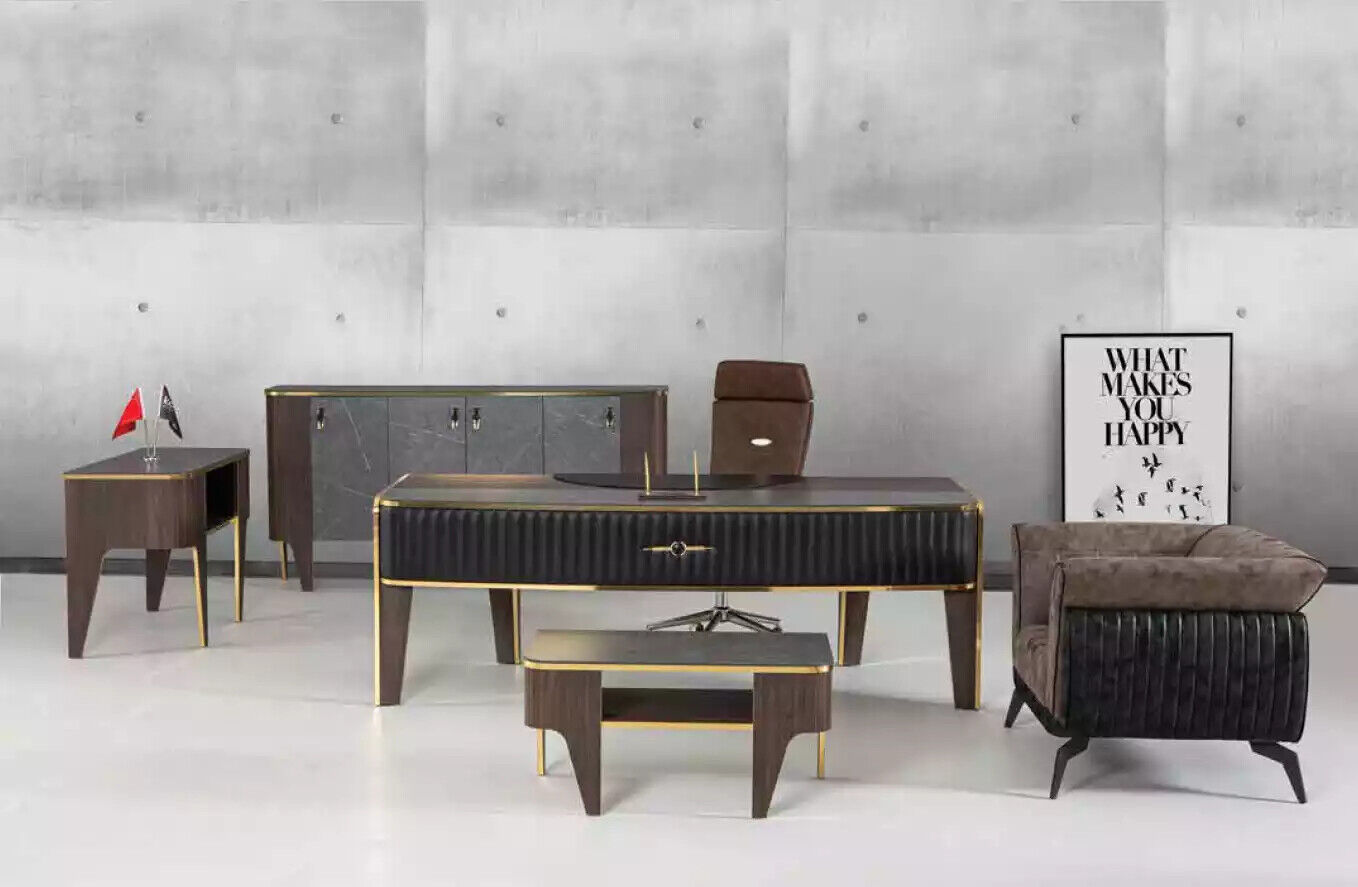Dit luxe kantoorbureau met laden is een aanwinst voor elk kantoor of werkkamer. Met afmetingen van ca. 220 x 95 x 75 cm biedt deze bureau voldoende ruimte om comfortabel te werken. Het bureau is gemaakt van hoogwaardig hout en is stevig en duurzaam. De kleur zoals afgebeeld past perfect bij elke stijl van inrichting, waardoor dit meubelstuk een tijdloze toevoeging is aan uw kantoorinrichting. De laden bieden handige opbergruimte voor al uw kantoorbenodigdheden, waardoor uw werkplek netjes en georganiseerd blijft.