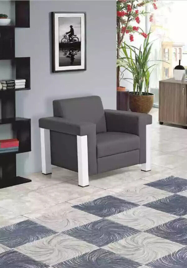 Grijze fauteuil kantoorinrichting studeerkamer gestoffeerde stoel modern zit meubels