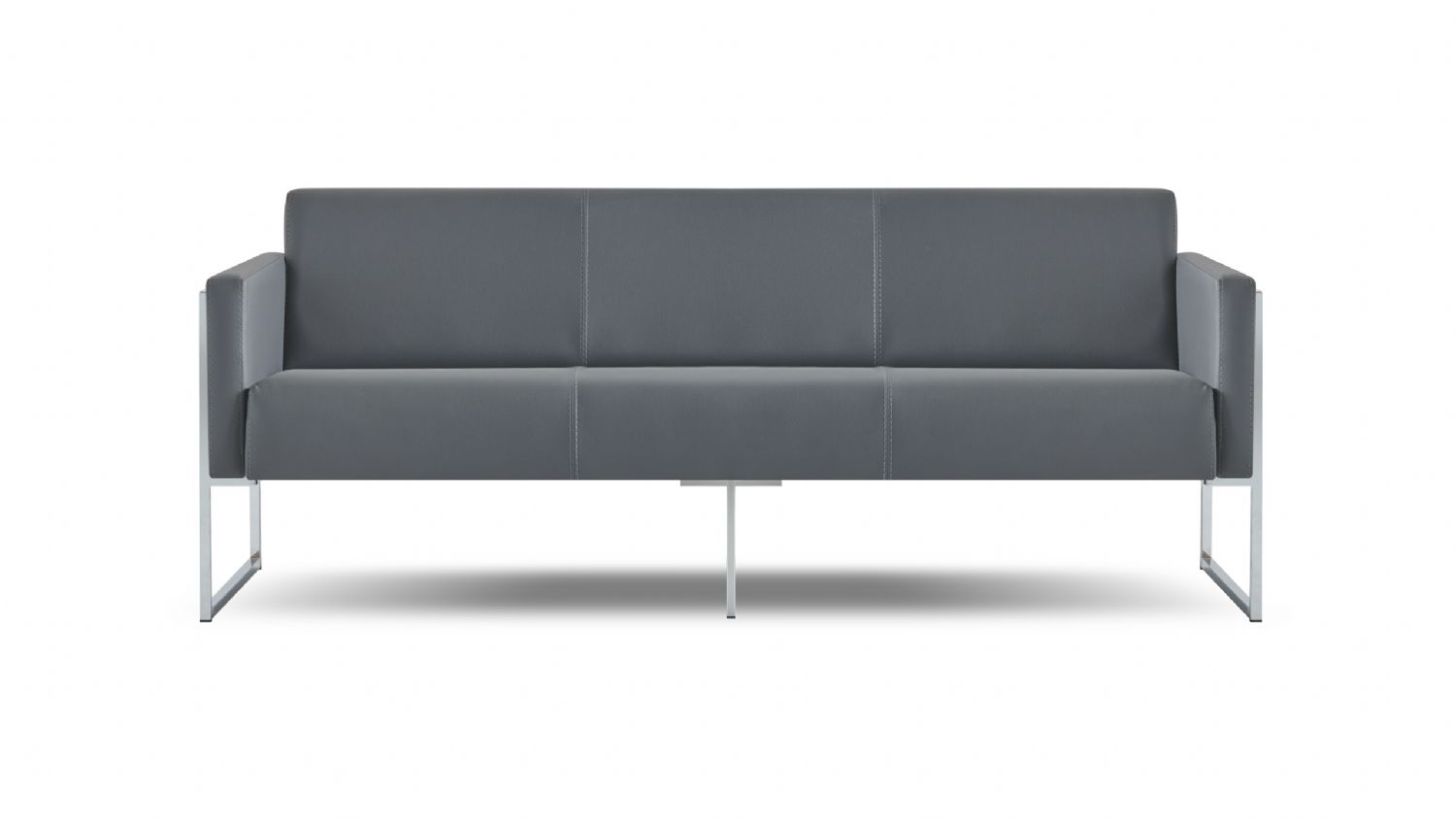 De grijze 3-zits en 2-zits banken evenals de twee fauteuils met zilveren poten van roestvrij staal zijn stijlvolle en comfortabele meubelstukken voor gebruik op kantoor. De banken bieden royale ruimte voor meerdere personen, terwijl de fauteuils elk een gezellige enkele zitplaats bieden.