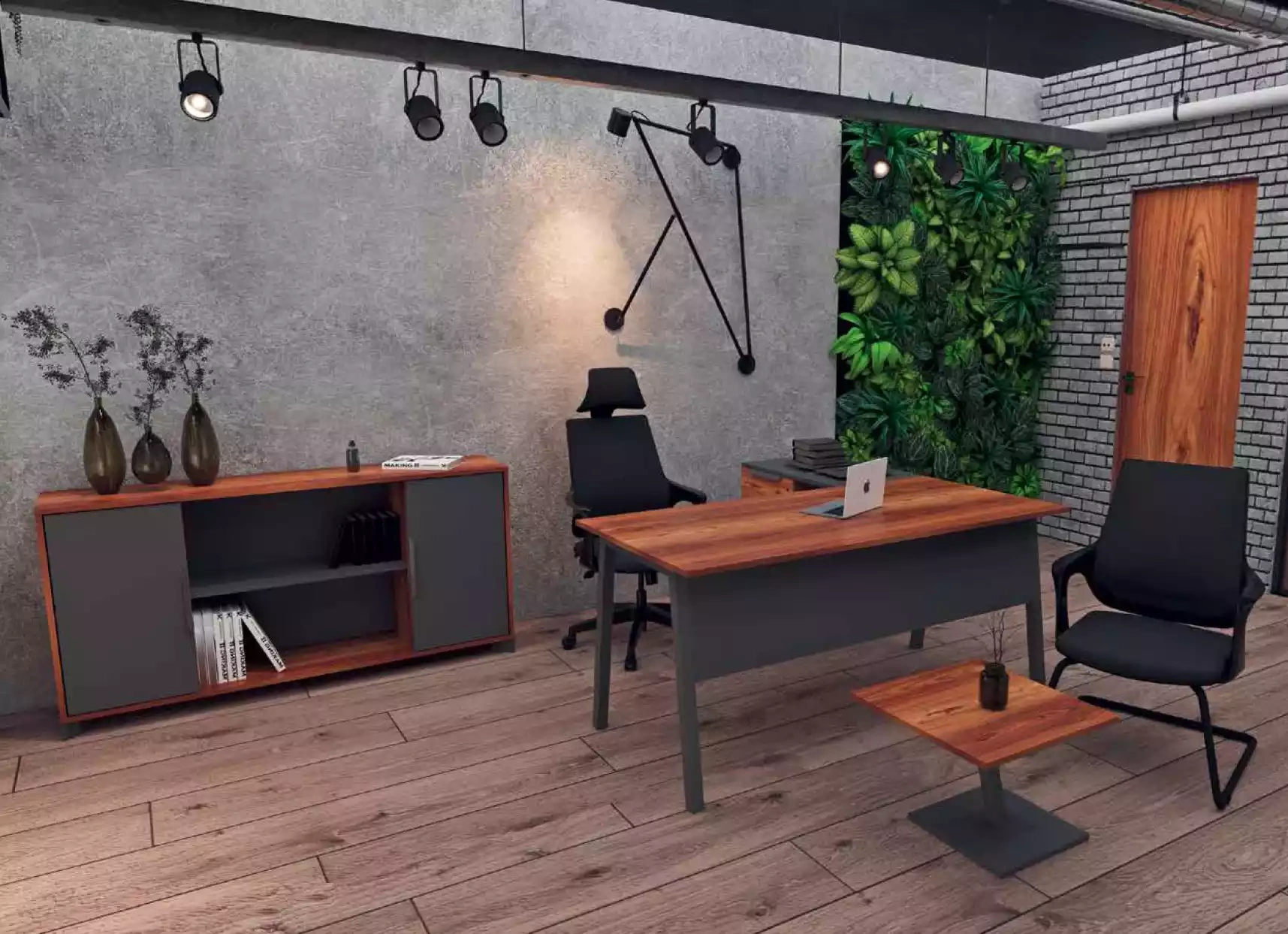 Bruine hoektafel met planken voor kantoor
