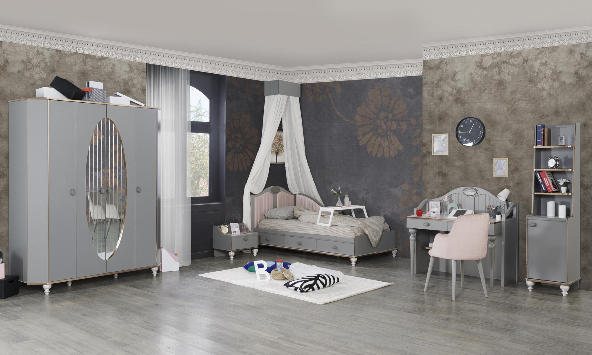 Kinderkamer meubels 5-delig set Ontwerp Bed Nachtkastje Kledingkast is de perfecte oplossing om de kinderkamer in te richten met mooie en functionele meubels. Deze 5-delige set bevat een comfortabel bed, een handig nachtkastje, een ruime kledingkast, een praktisch bureau en een stijlvolle boekenkast. Gemaakt van hoogwaardig hout, bieden deze meubelstukken duurzaamheid en een tijdloos ontwerp dat jarenlang meegaat. Met afmetingen die perfect zijn afgestemd op de behoeften van kinderen, is deze set ideaal voor een gezellige en georganiseerde kinderkamer.