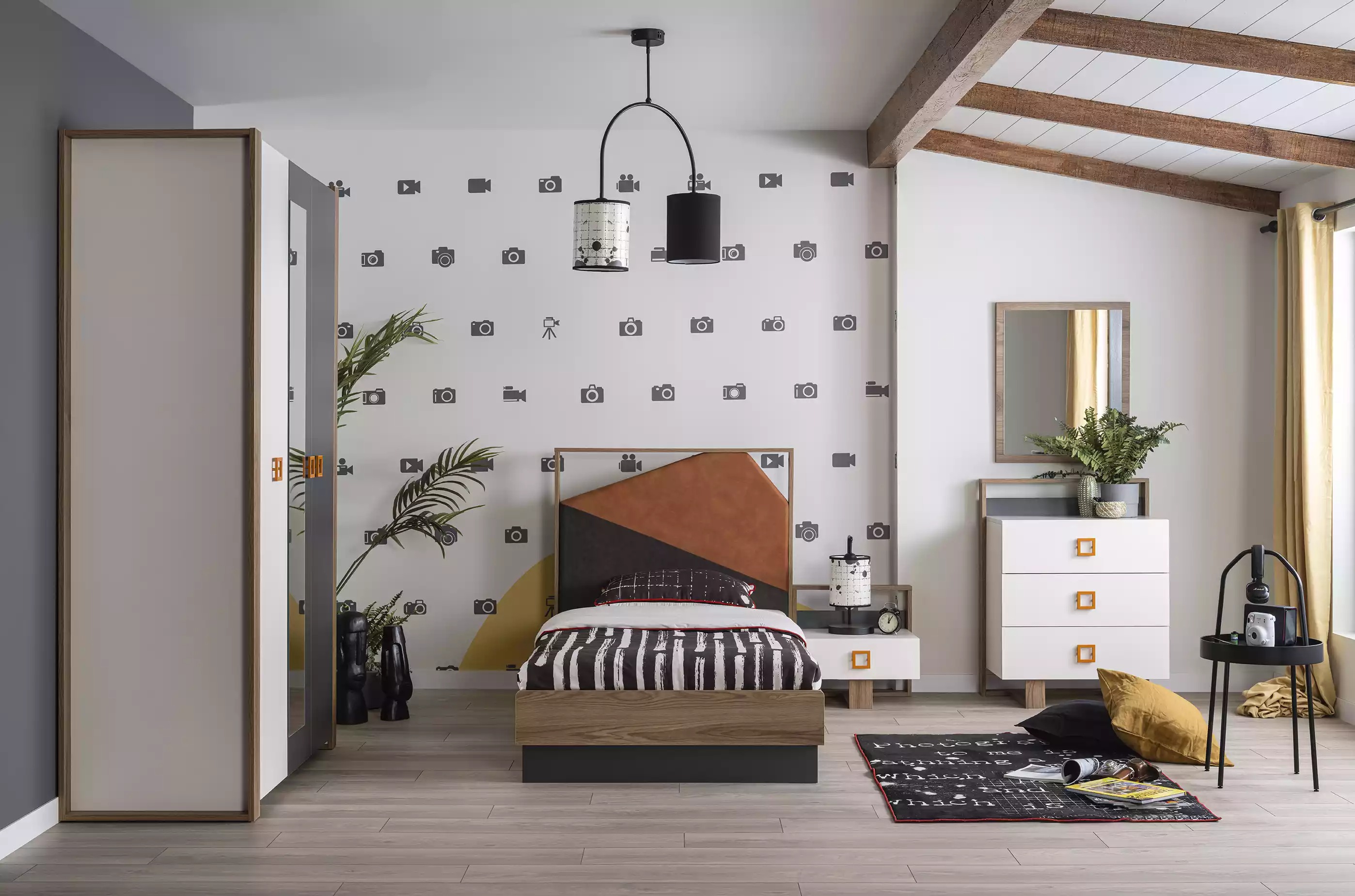 In deze meubelset is elk item zorgvuldig ontworpen om maximaal comfort en gebruiksgemak te bieden aan kinderen. Met afmetingen zoals een ca. 100 cm x 200 cm matrasoppervlakte en een ca. 108 cm x 211 cm x 112 cm bedmaat, is dit setje geschikt voor een kinderkamer van elke grootte. De diverse meubelstukken zoals de kledingkast, bureau en stoel bieden voldoende opbergruimte en functionaliteit voor het dagelijks gebruik. Gemaakt van hoogwaardig hout, belichaamt deze meubelset duurzaamheid en kwaliteit, wat een veilige en comfortabele omgeving voor kinderen garandeert.