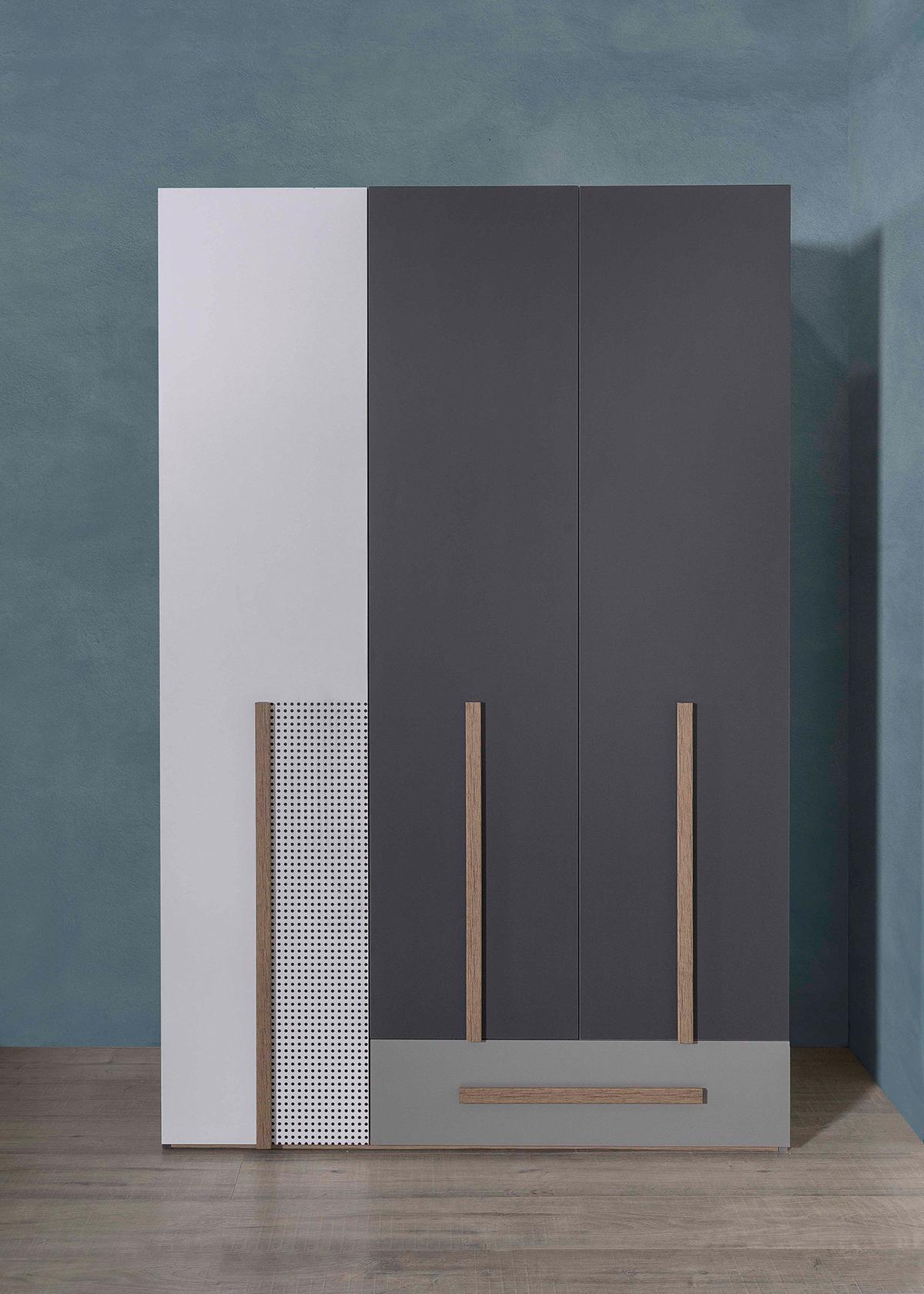 Grijze tienerkamer kledingkast boekenplank kinderkamer bed 5-delig