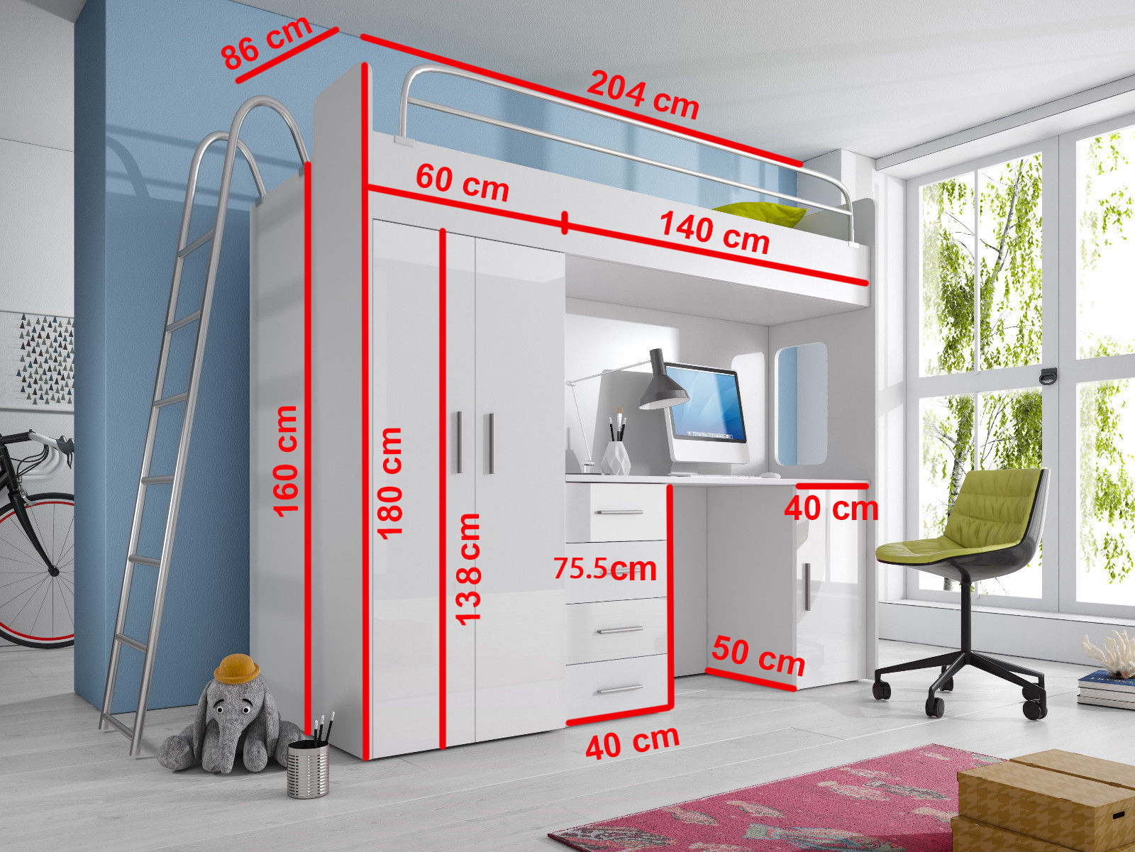 Inclusief een matrasoppervlak van ca. 80 x 200 cm, een breed bureau van ca. 140 x 75,5 x 50 cm en een kledingkast van ca. 60 x 138 x 50 cm, dit meubelstuk biedt alles wat je nodig hebt voor een compacte slaap- en werkruimte. De zwarte kleur zorgt voor een moderne uitstraling die bij verschillende interieurstijlen past. Ideaal voor studentenkamers, studio-appartementen of slaapkamers met beperkte ruimte, het STAPELBED TWIJFELBED HOOGSLAPER BUREAU+KLEDINGKAST-RAJ 4D ZWART is een slimme en praktische keuze voor wie op zoek is naar functionaliteit en stijl in één meubelstuk.