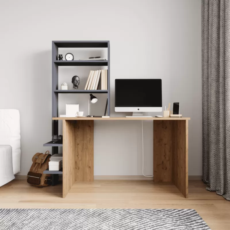 Slaapkamer tienerkamer Bureau Computertafel Modern Design Bruin Grijs