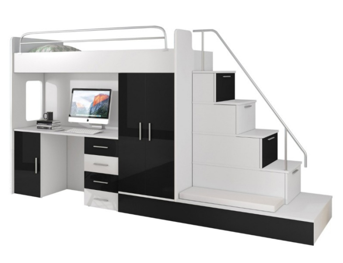 Met het functionele ontwerp van dit hoogslaper stapelbed hebben kinderen niet alleen een comfortabele slaapplaats, maar ook voldoende opbergruimte voor hun spullen. De robuuste houten constructie zorgt voor duurzaamheid en stabiliteit, terwijl de efficiënte indeling van het meubelstuk ruimte bespaart in een kinderkamer of tienerkamer. Of het nu gaat om huiswerk maken, spelen of gewoon ontspannen, dit hoogslaper stapelbed biedt een complete oplossing voor een functionele en georganiseerde slaapkamer. Met zijn Zwarte hoogglans afwerking en multifunctioneel ontwerp is dit stapelbed de ideale aanvulling op elke moderne kinder- of tienerkamer.