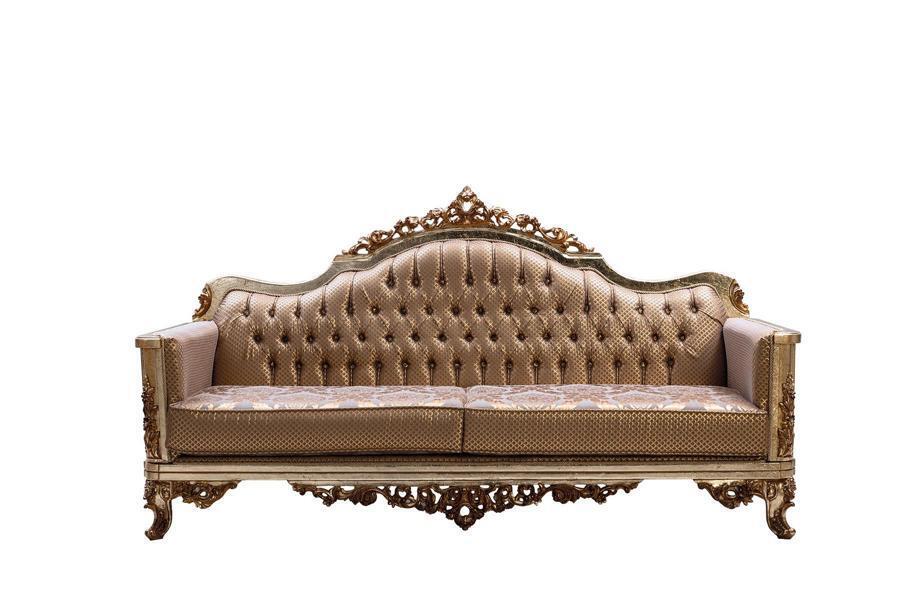 Sofa Set 3+1 Zits Gouden salontafel Bankstel Woonkamer Luxe Nieuw: Deze prachtige sofa set voegt een vleugje luxe toe aan je woonkamer. De set bestaat uit een 3-zitsbank, een fauteuil en een salontafel in een elegante gouden afwerking. Met afmetingen van ca. 245 x 85 x 125 cm voor de bank, 85 x 80 x 135 cm voor de fauteuil, en 120 x 90 x 50 cm voor de salontafel, biedt dit setje ruime en comfortabele zitplaatsen. De zithoogte van ca. 44 cm en zitdiepte van ca. 56 cm zorgen voor ultiem comfort tijdens het ontspannen in stijl.