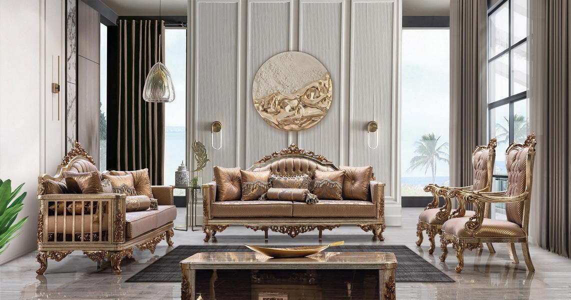 Sofa Set 3+1 Zits Gouden salontafel Bankstel Woonkamer Luxe Nieuw